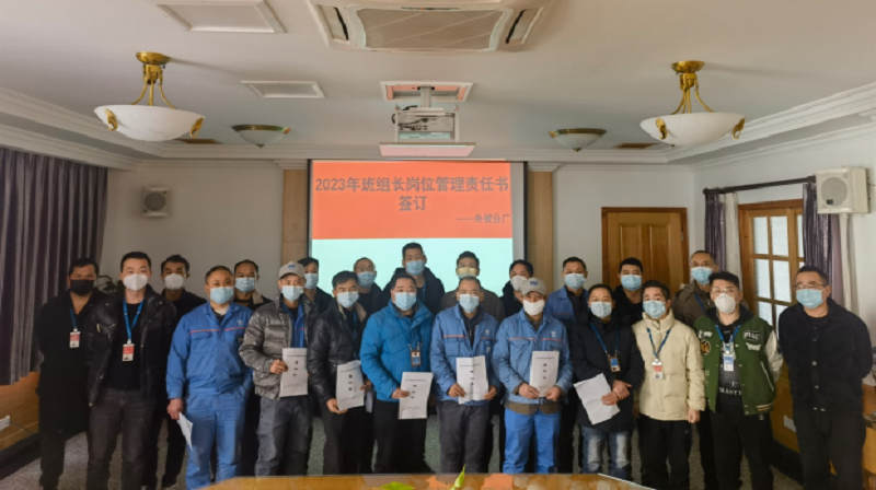 【精益求精善益求善】班組是企業(yè)的細(xì)胞,班組工作完成的好壞,直接關(guān)系到企業(yè)各項生產(chǎn)指標(biāo)的順利完成,2023年1月6日外貿(mào)廠區(qū)加強(qiáng)班組建設(shè)組織各車間主任及車間班組長于三樓會議室進(jìn)行“班組長責(zé)任書簽訂儀式”。