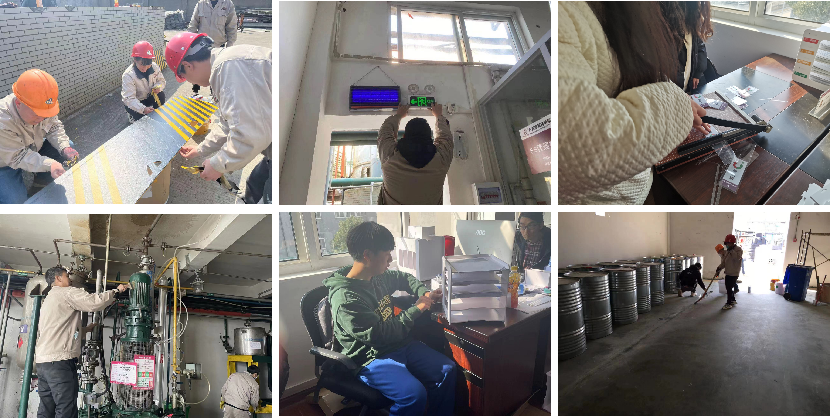 2.顧問老師安排各團隊今明兩天的主要工作是盡快完成各樣板區(qū)剩余的環(huán)境整理整頓以及可視化標準改善:倉儲中心要完成倉庫的目視化改善,倉庫門口警戒線、地面清掃、地面標識等;制水車間要完成車間內(nèi)地面清潔、門口通道線、開關(guān)標識等處的改善;QA辦公室今日進入整體收尾,查漏補缺包括桌面、柜子抽屜、清掃工具擺放等;一車間脫色區(qū)要完成釜的外表劃線、地面除漆、產(chǎn)線定位、生產(chǎn)狀態(tài)標識牌的設(shè)置、桌面物品的定置擺放等。